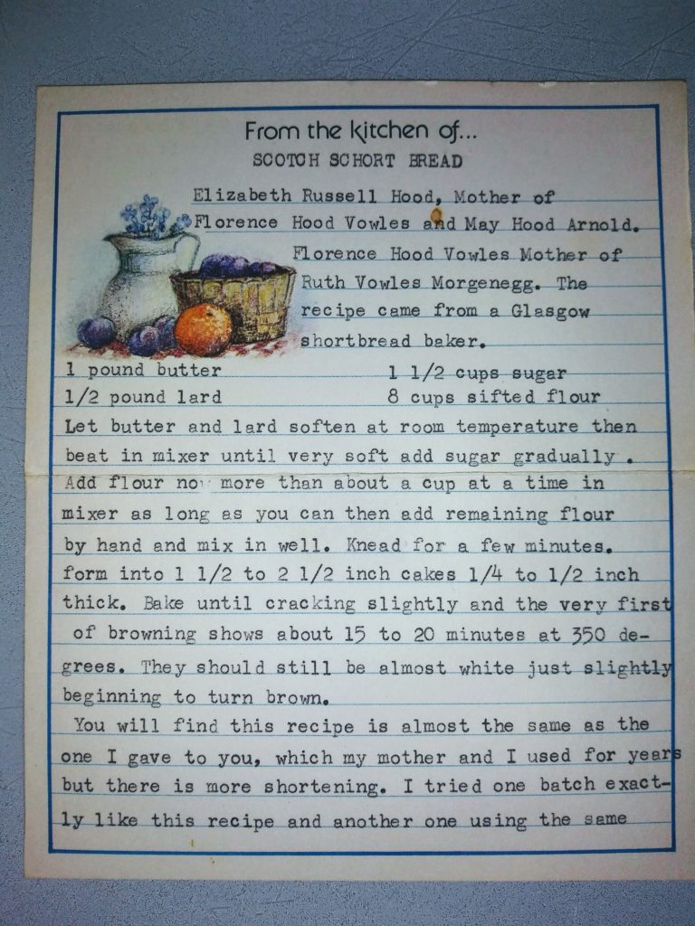 This is the recipe from my Great Great Grandma Elizabeth Hood. She is the Grandma of Grandma Ruth Morgenegg my grandma.